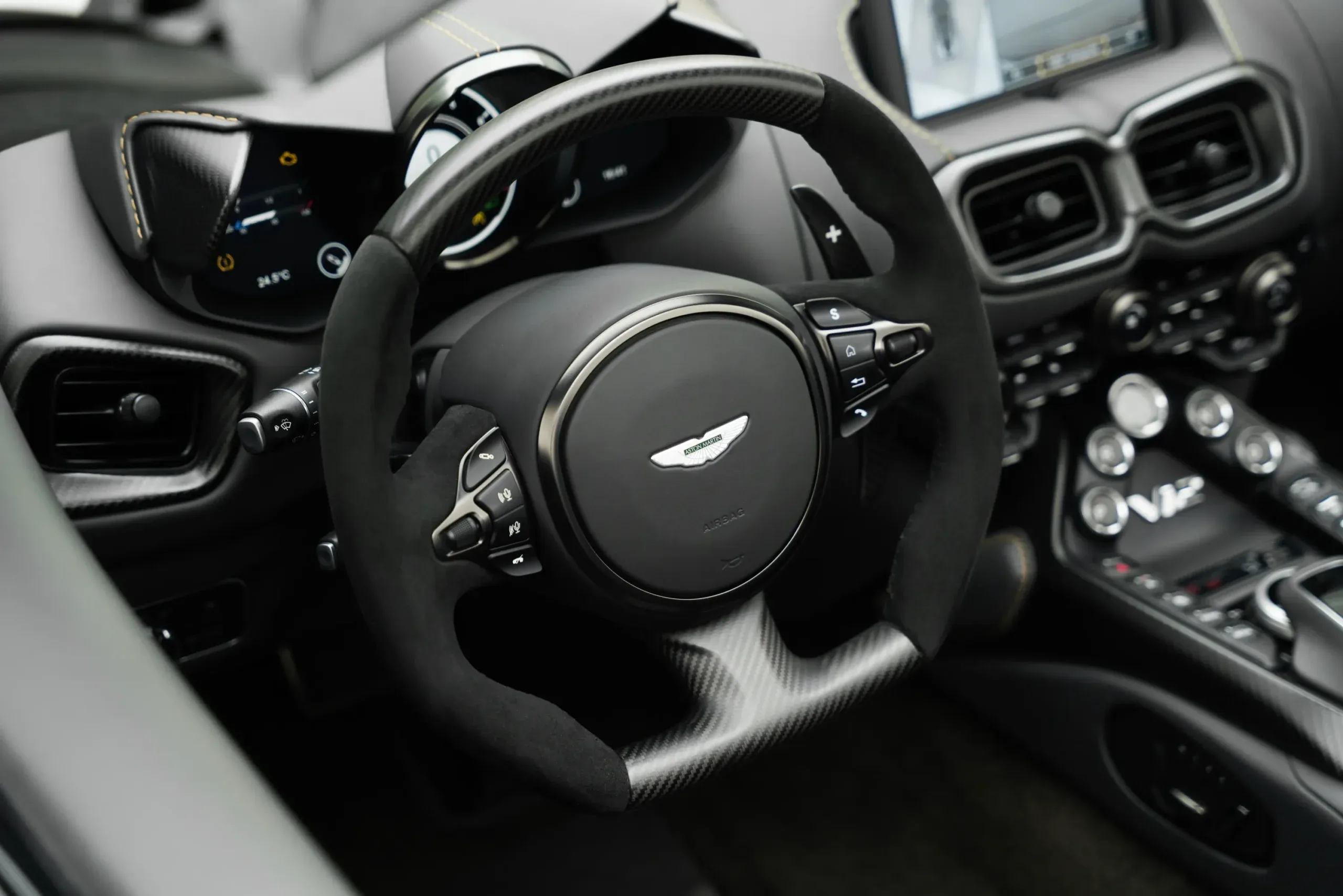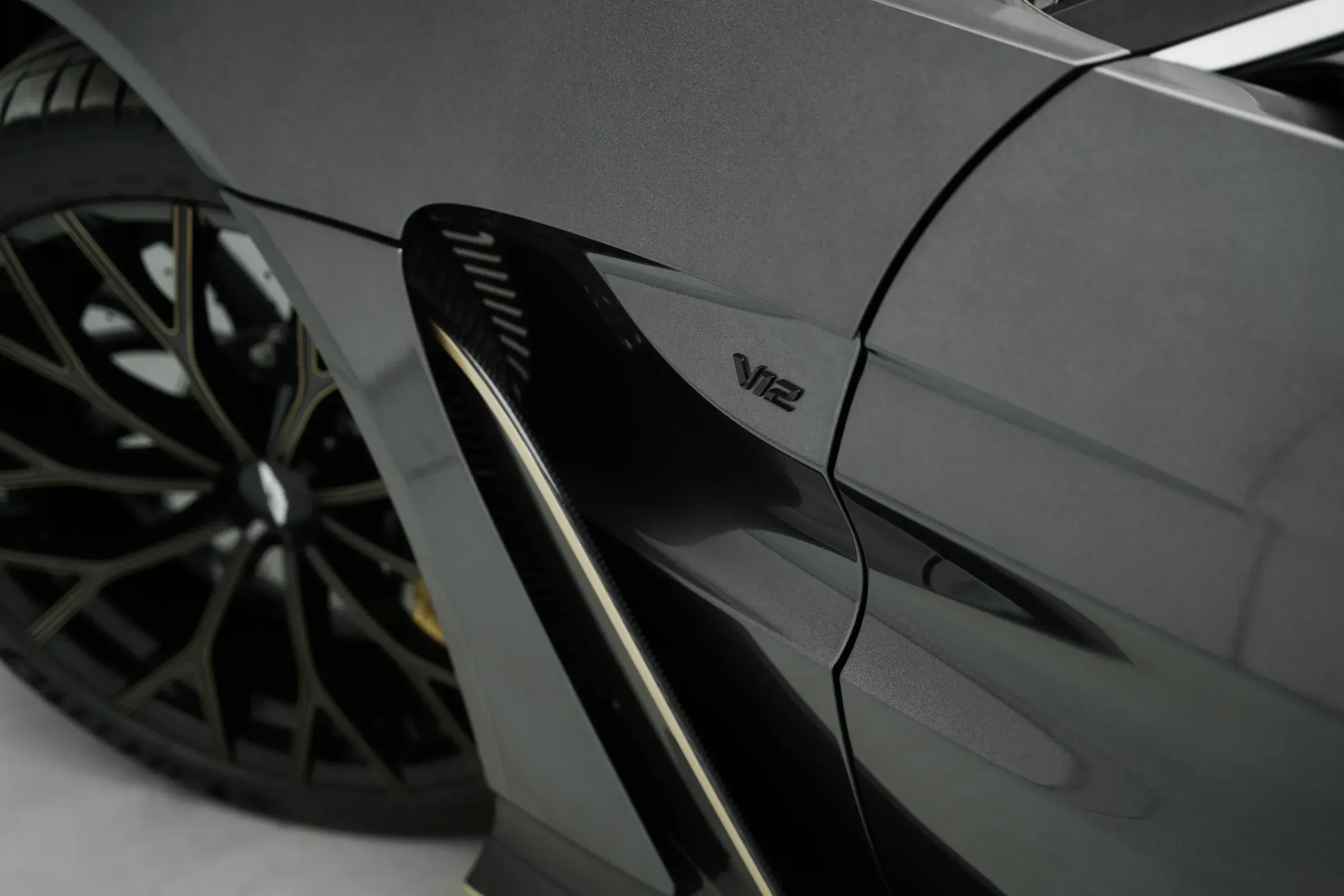The 2023 V12 Vantage represents the final production run of the nameplate, featuring a 5.2-liter twin-turbocharged engine. The chassis is enhanced with a wide-body design, increased track width, and a stiffened suspension system including new adaptive dampers. Aerodynamics are optimized through a full-width front splitter and a large rear wing producing significant downforce. Power is managed via a rear-mounted 8-speed automatic transmission and a mechanical limited-slip differential.